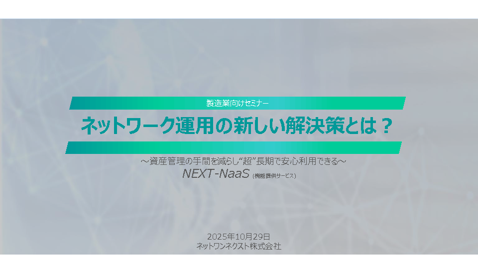 【製造業向け】頻発するEOSL対応に振り回されない、ネットワーク運用の新しい解決策とは? ~資産管理の手間を減らし、“超”長期で安心利用できる「NEXT-NaaS」~