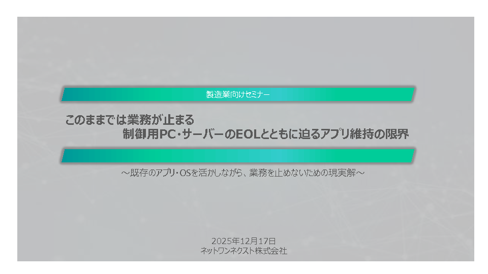 15:05~15:45 【製造業向け】このままでは業務が止まる―制御用PC・サーバーのEOLとともに迫るアプリ維持の限界