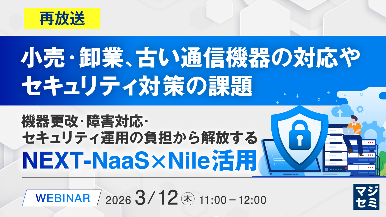 11:05~11:45 小売・卸業、古い通信機器の対応やセキュリティ対策の課題 ~機器更改・障害対応・セキュリティ運用の負担から解放する、NEXT-NaaS×Nile 活用~