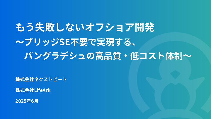 本セミナーでは、従来のオフショア開発で多くの企業が抱えていた課題を解消する、新しいモデルをご紹介します。特徴は、バングラデシュの高スキルなエンジニアが、ブリッジSEを介さず日本企業と直接やり取りを行い、高品質かつ低コストで安心できる開発体制を実現している点です。実際の導入事例やプロジェクト成功のポイントを交えながら、どのようにオフショア開発を進めればよいのか、具体的なステップを解説します。また、日本語対応可能な体制やセキュリティ面にも触れ、導入に際しての不安を解消します。