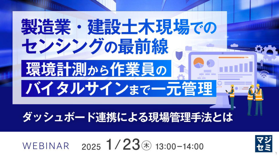 13:05~13:45 「製造業・建設土木現場でのセンシングの最前線:環境計測から作業員のバイタルサインまで一元管理」~ダッシュボード連携による現場管理手法とは~