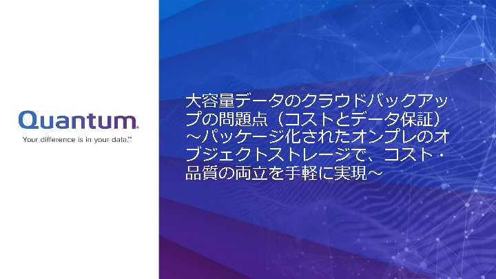 本セミナーでは、クラウドバックアップの問題点と、その解決方法としてパッケージ化されたオンプレのオブジェクトストレージについて解説致します。