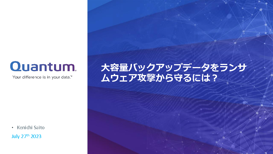 10:05~10:45 大容量バックアップデータをランサムウェア攻撃から守るには?〜日々増え続ける社内の機密データを低コストかつセキュアに管理する方法