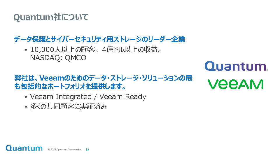 今回のセミナーでは、大容量のバックアップデータをランサムウェア攻撃から守り、低コストかつ効率的に管理する方法として、Veeam® Data Platform認定を受けたQuantum製品とVeeam社のバックアップソフトを使用したバックアップ方法を紹介いたします。