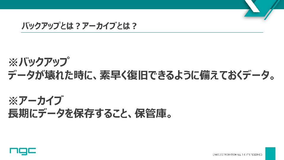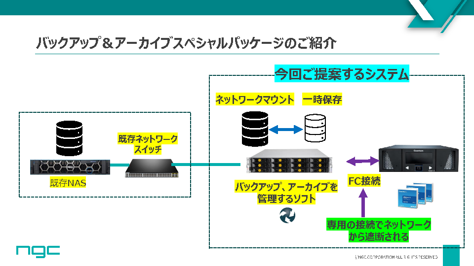 本セミナーでは、100~300TBのバックアップデータを保有している企業様向けに、大容量のデータをセキュアにバックアップする方法として、コストを抑えつつ、長期間の安全な保管を可能とするエヌジーシーのテープバックアップソリューションを紹介します。