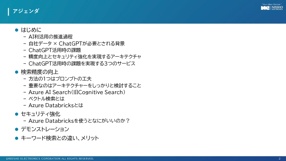 今回のセミナーでは、日商エレクトロニクスから、デモを交えて、セキュリティ、精度向上などの課題解決を解説します。