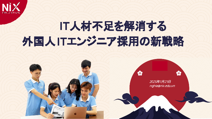 本ウェビナーでは、外国人のIT人材採用の課題を解決できるだけでなく、即戦力となれるスキルを持ちながら、コミュニケーションや日本企業の文化を理解した、ベトナム人ITエンジニアを採用することができるスキームをご紹介します。