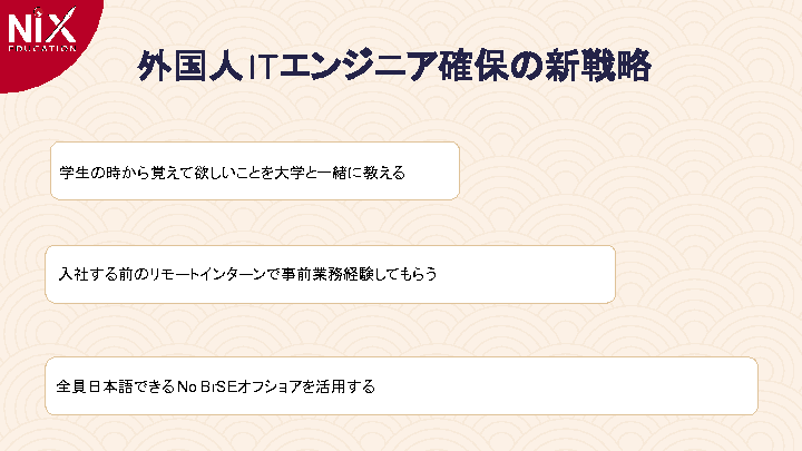 14:05~14:45 IT人材不足を解消する外国人ITエンジニア採用の新戦略 ~即戦力かつカルチャーフィットした人材を「リモートインターン」の活用で実現する~