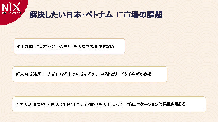 この問題を解決するために、本セミナーでは、いきなり採用するのではなく、まずはベトナム人ITエンジニアをインターンとして実際の業務を体験してもらう、というアプローチを提案します。