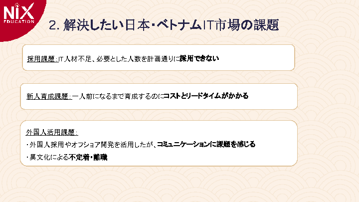 14:05~14:45 オフショア開発「ブリッジSE」の問題点 ~意思疎通、コストの課題と、全員日本語が話せるベトナムオフショア開発の提案~