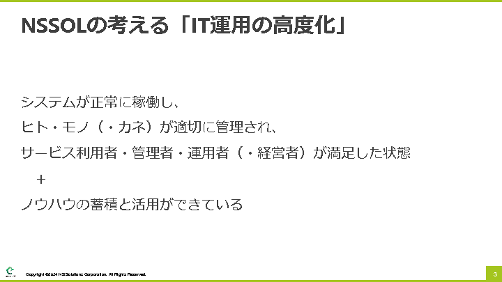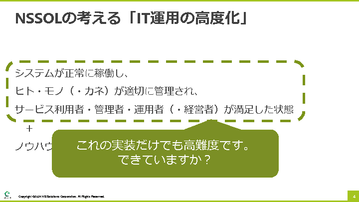 そこで、本ウェビナーの前半では、日鉄ソリューションズ株式会社より、IT運用を高度化していくための効果的な考え方を解説します。