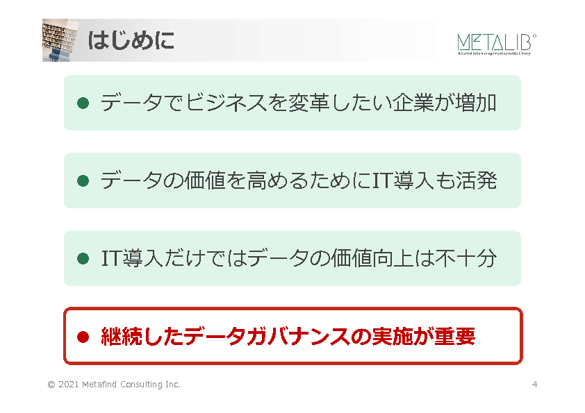 16:05~16:25 DXに必要なデータマネジメントとデータガバナンス(Metafindコンサルティング)