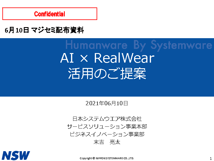 10:05~10:30 AIを活用したリアルウェアの活用事例の紹介(NSW)