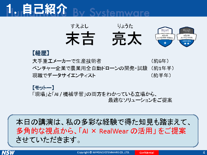 今回はNSWが提供できるAI×RealWearソリューションについてご案内致します。