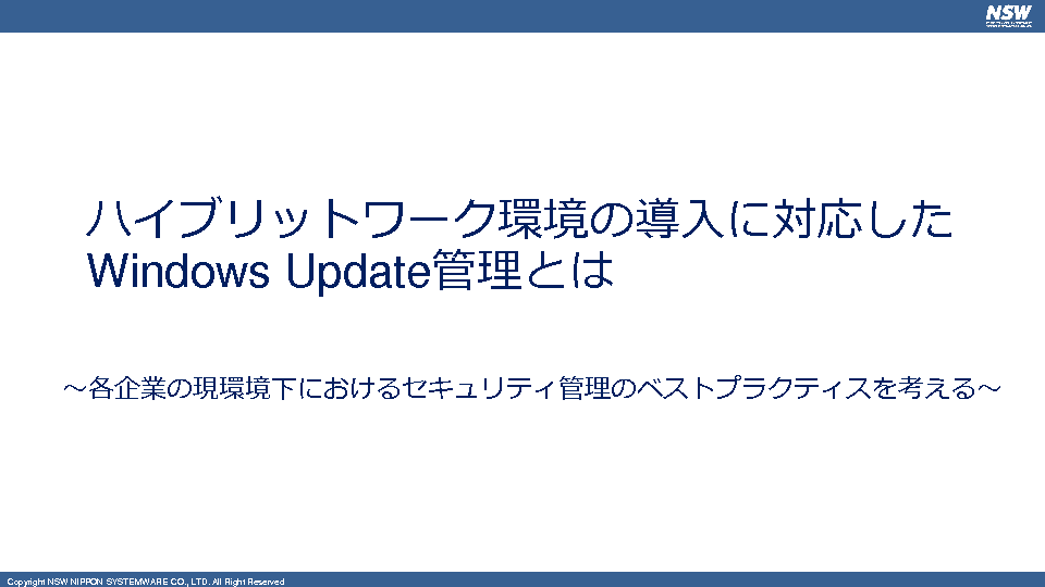 そこで本セミナーでは、各社の状況に合わせた最適なアップデート管理方法をどうやって選択すればよいのかについて解説します。