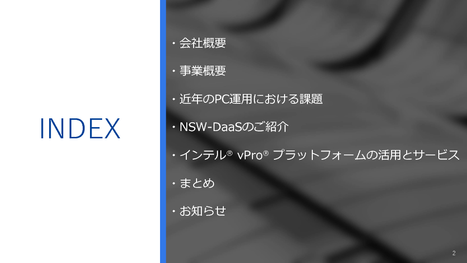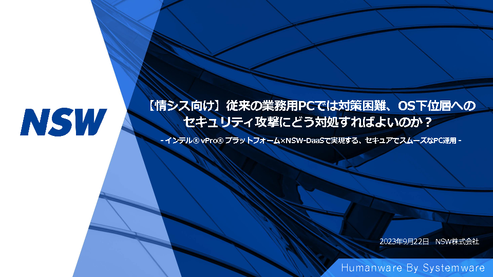 14:25~14:45 NSW:インテル® vPro® プラットフォーム×NSW-DaaSで実現する、セキュアでスムーズなPC運用