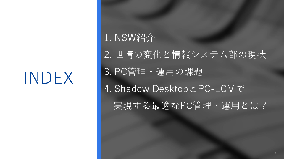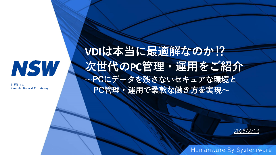 12:05~12:45 VDIは本当に最適解なのか?次世代のPC管理・運用をご紹介 ~PCにデータを残さないセキュアな環境とPC管理・運用で柔軟な働き方を実現~