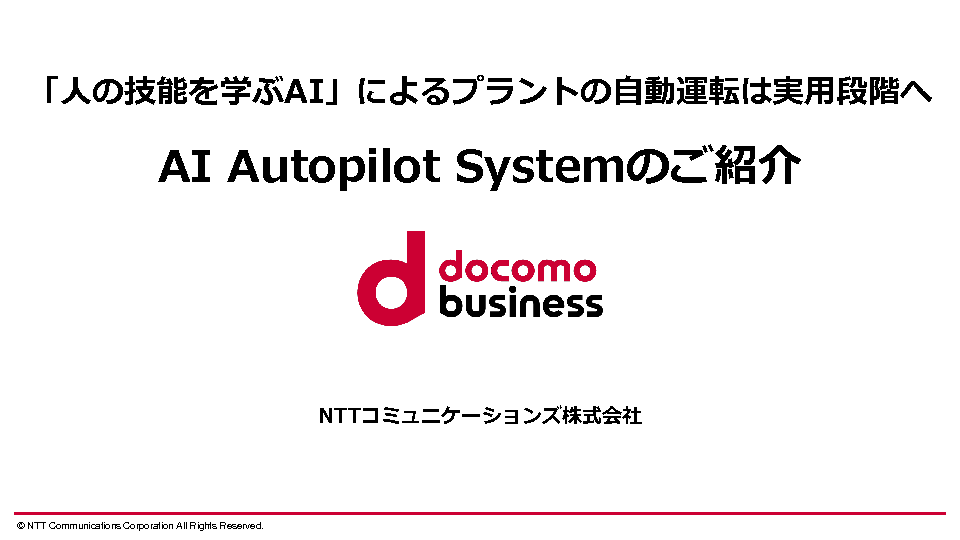 13:05~13:45 既存のプラント制御技術(PIDやモデル予測制御)では自動化できない箇所をどうAIで制御させるのか? ~国内初!!人の操作を学んだAIが自動運転を行うAI Autopilot System~