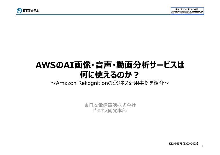 11:05~11:45 AWSのAI画像・音声・動画分析サービスは何に使えるのか?~Amazon Rekognitionのビジネス活用事例を紹介~
