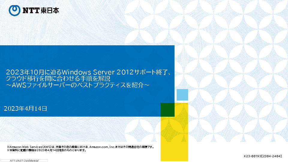 13:05~13:45 2023年10月に迫るWindows Server 2012サポート終了、クラウド移行を間に合わせる手順を解説〜AWSファイルサーバーのベストプラクティスを紹介〜