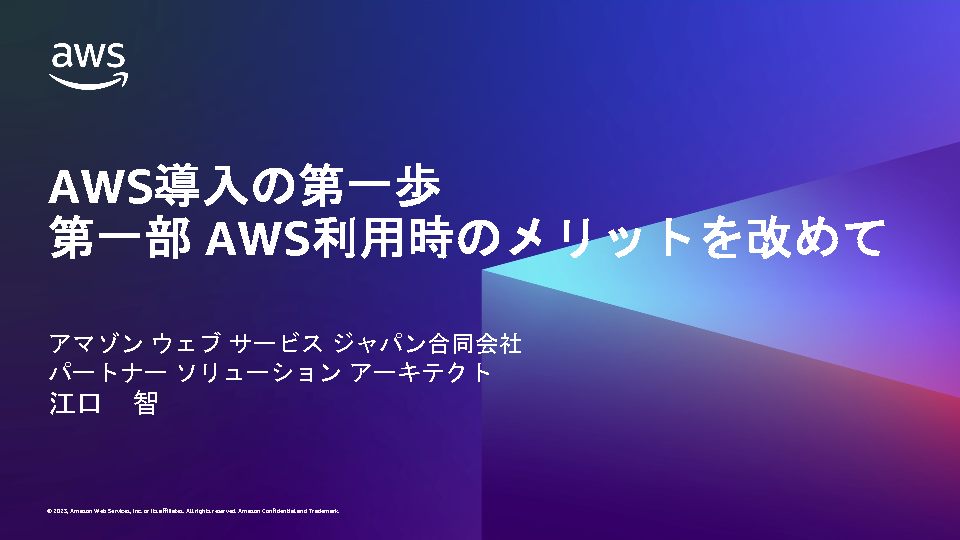 11:05~11:30 第一部 :アマゾン ウェブ サービス ジャパン合同会社 シニア パートナー ソリューション アーキテクト 江口 智