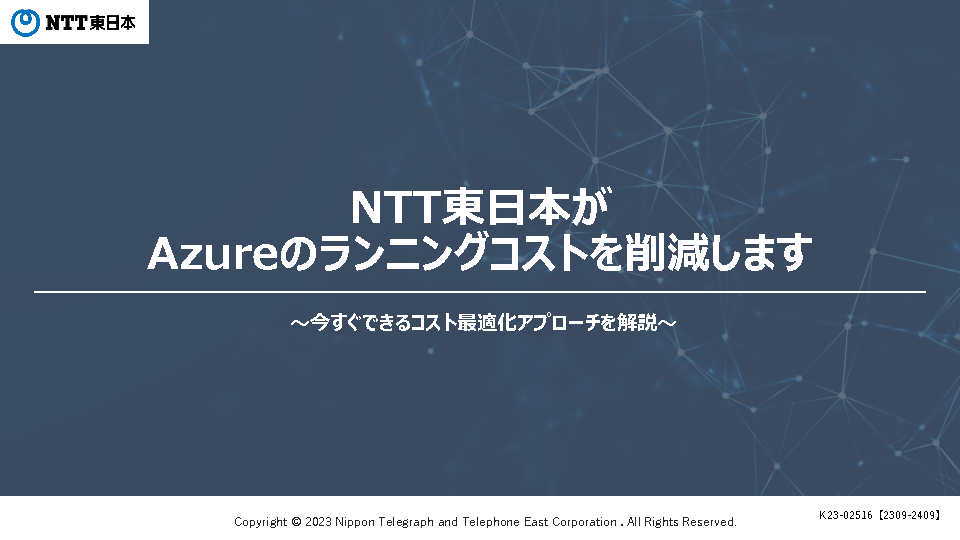 10:05~10:45 NTT東日本がAzureのランニングコストを削減します~今すぐできるコスト最適化アプローチを解説~