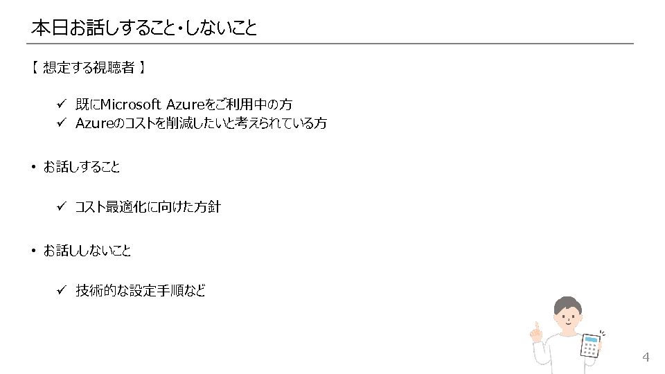 Azureのランニングコストに頭を抱えている方や、効率的な利用法を学びたい情報システム部門の方は、ぜひご参加ください。