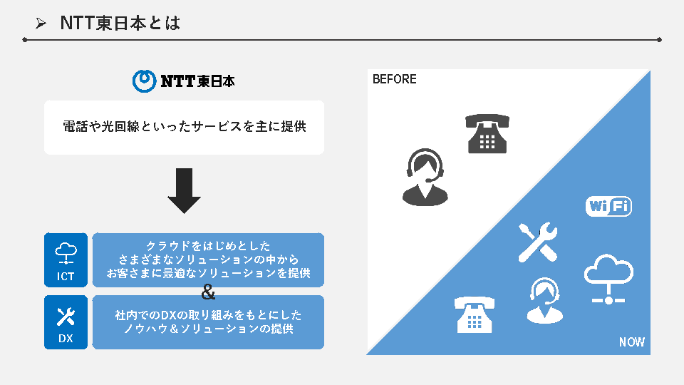 今回のセミナーでは、生成AI活用の研修・ワークショップ、業務内容への適応、システム導入のポイントについて、NTT東日本の生成AIソリューションを紹介しながら解説します。