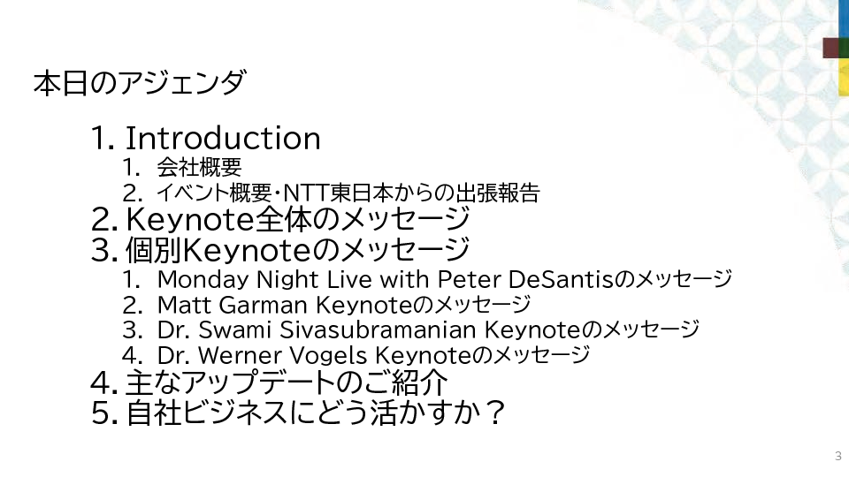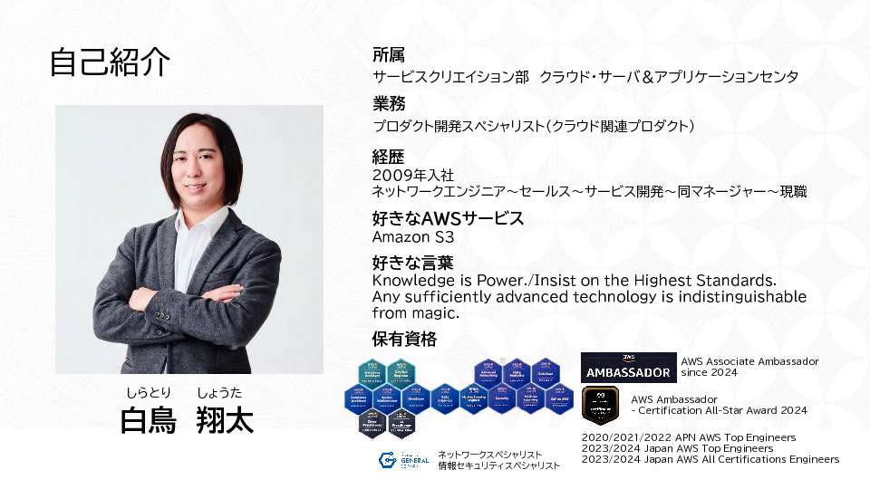 13:05~13:25 AWS Ambassadorが見るKeynoteで発信された注目メッセージ シニアスペシャリスト 白鳥 翔太