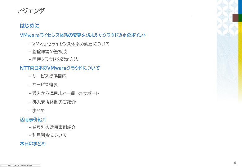 11:05~11:45 【クラウド選定に迷う方へ】インフラと構築・運用を一本化、NTT東日本VMwareクラウドで円滑移行 ~基盤から運用の一元サポートのメリットとLGWAN・SINET対応で多様なニーズに応える基盤を解説~