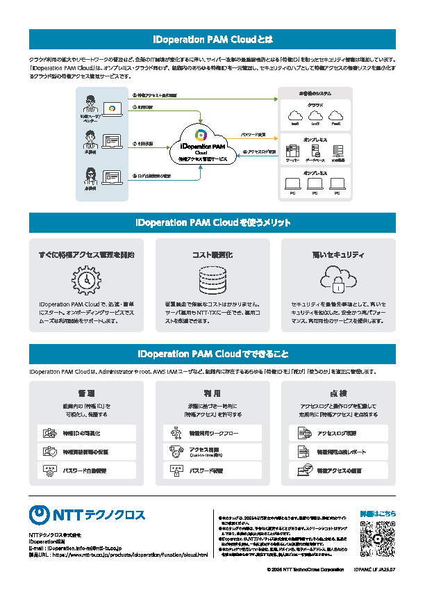 そこで本セミナーでは、実際のインシデント事例を踏まえ、NTTテクノクロスが提供する「iDoperation PAM」の基本機能と戦略的な適用ステップを解説。また、人以外のIDやエンドポイントを含む高度な管理の考え方や、監査レベルに応じた対応方法も紹介します。特権ID管理に伴う煩雑な作業の自動化によって、リスク低減と運用負荷軽減を両立する実践的なアプローチに迫ります。