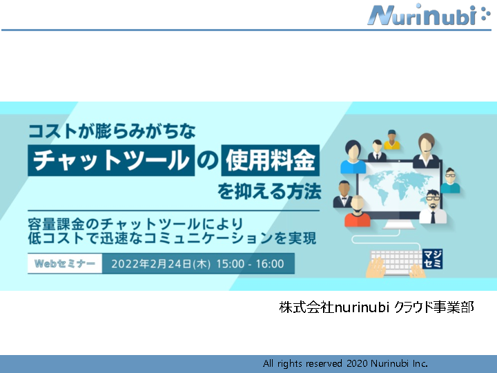 そこで本セミナーでは、ユーザー課金ではなく容量課金のチャットツールを用いることによって迅速なコミュニケーションを低コストで実現できる方法を紹介します。