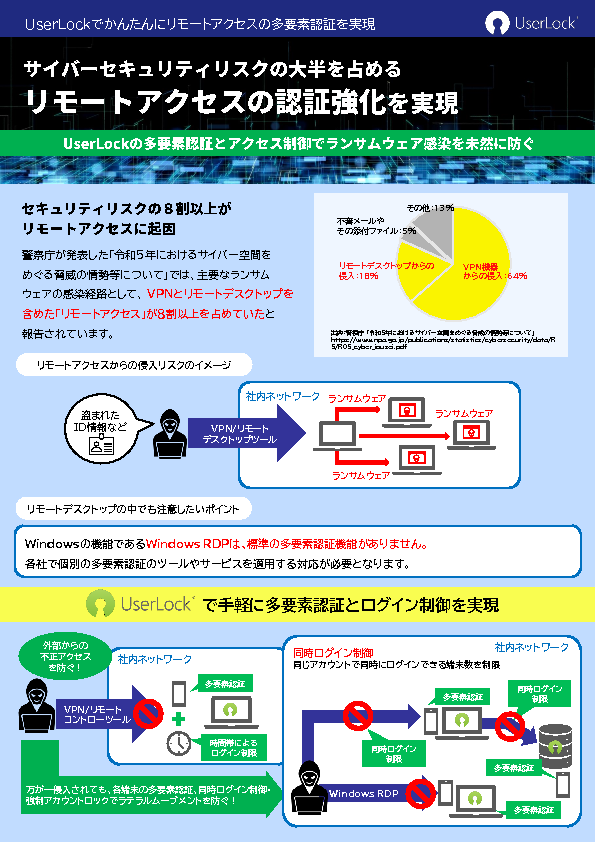 本セミナーでは、こうしたUserLockの特長や導入事例を、デモンストレーションを交えてご紹介します。ランサムウェア対策とリモートデスクトップのセキュリティの課題解決に、ぜひUserLockをご検討ください。