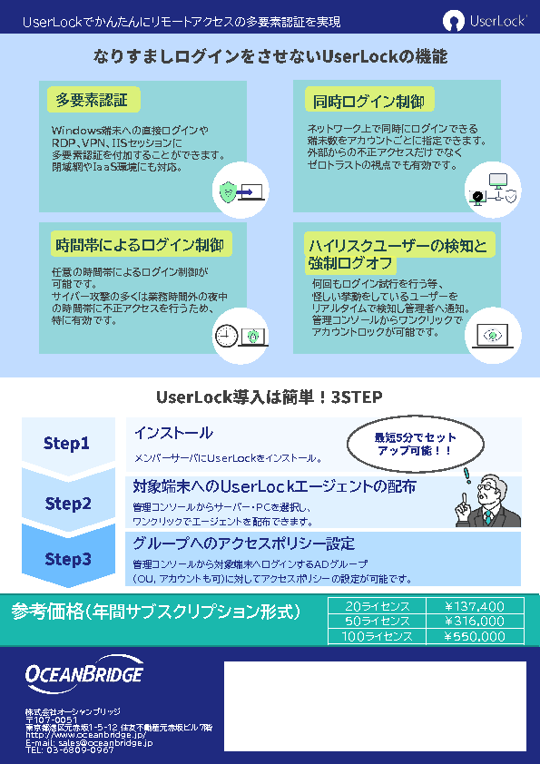 14:05~14:45 リモートデスクトップ接続に最適なオンプレ多要素認証〜「UserLock」ではじめる、ランサムウェア対策に有効なログイン制御〜