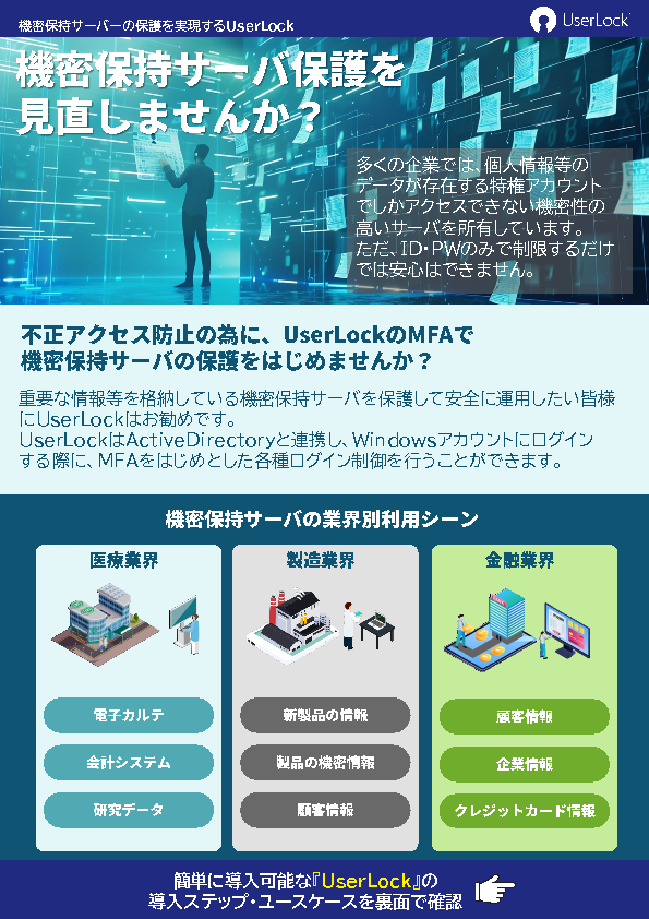 13:05~13:45 不正アクセスから機密情報を守る多要素認証〜オンプレミス・IaaS対応「UserLock」で強固なセキュリティを手軽に実現〜