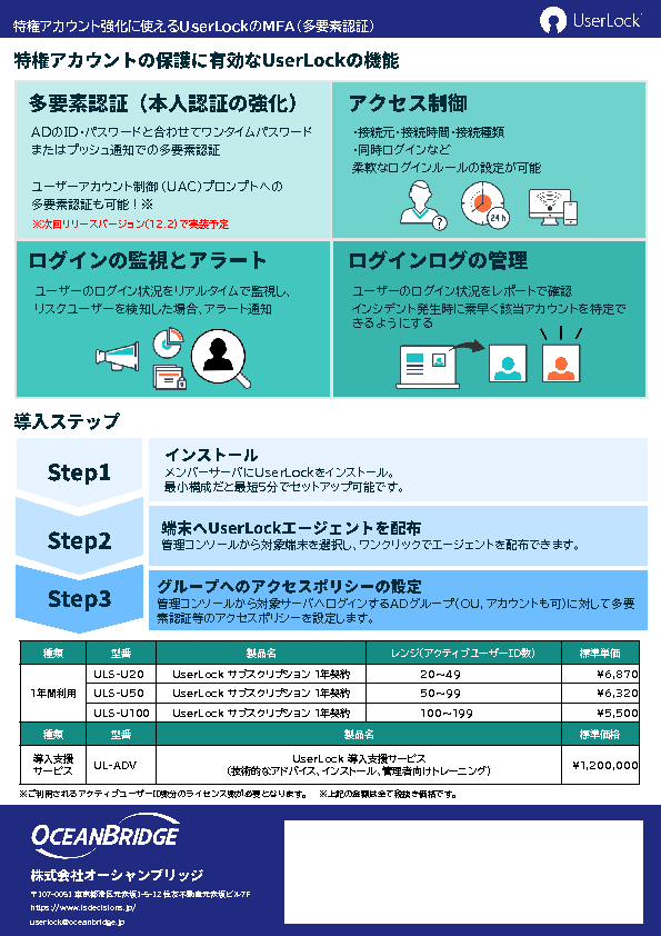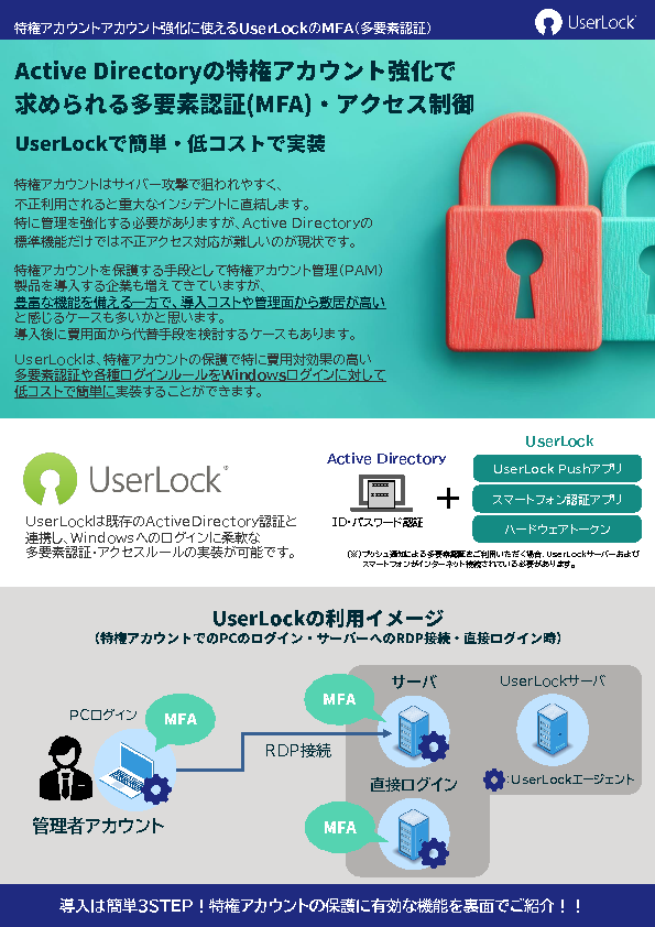13:05~13:45 Active Directoryの特権アカウントが狙われる?PAMなしで実現する防御策〜多要素認証・アクセス制御ツール「UserLock」で低コスト・簡単に実現する方法〜