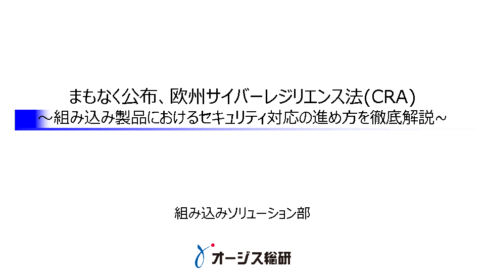 本セミナーでは、組み込み製品に対する欧州CRA等の法規制に対応する必要がある企業向けに、組み込み製品にセキュリティ対応が求められる背景や、国内外の法規制等の説明に加え、欧州CRA等の法規制を考慮してセキュリティアセスメントを行い、セキュリティ対策を導出して実現する進め方を詳しく説明します。