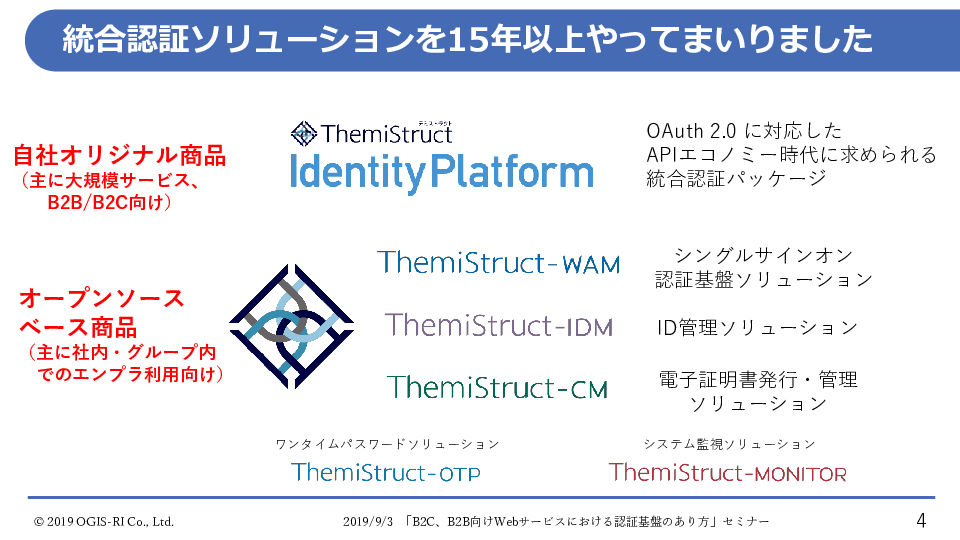 15:45~16:15「共通ID基盤のスピード導入」と「ソーシャルサイトを対象としたアイデンティティ連携」の実現方法~ThemiStruct Identity Platform Cookbook 2019~