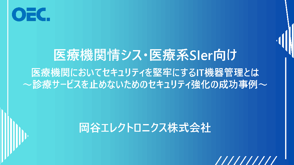 15:05~15:50 【医療機関情シス・医療系SIer向け】医療機関においてセキュリティを堅牢にするIT機器管理とは~診療サービスを止めないためのセキュリティ強化の成功事例を紹介~