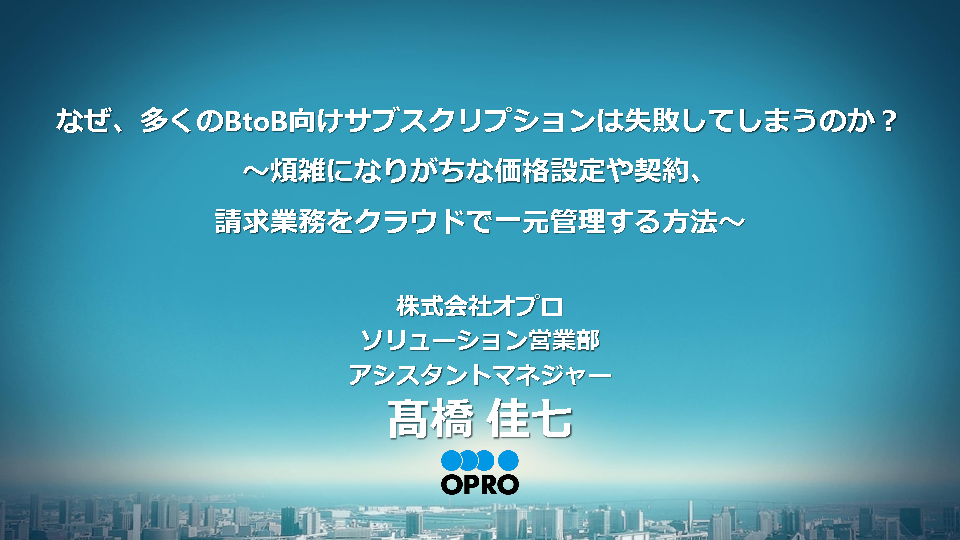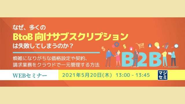 本セミナーでは、BtoB企業が抱える課題を解決する「最適なサブスクリプション管理を実現するクラウドサービス」について、利用イメージを交えながら詳しくご紹介いたします。