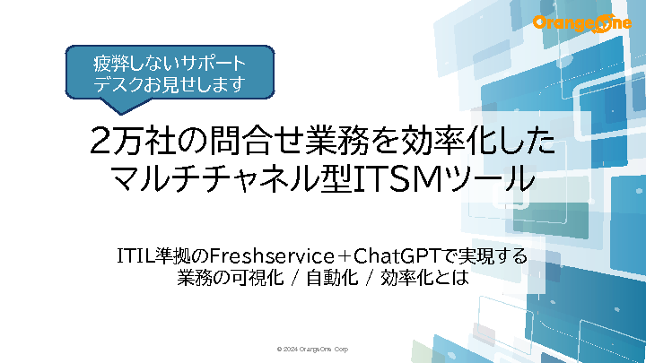 「疲弊しないサポートデスクお見せします」2万社の問合せ業務を効率化したマルチチャネル型ITSMツール ~ITIL準拠のFreshservice+ChatGPTで実現する業務の可視化/自動化/効率化とは~