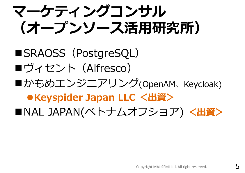 ※本コミュニティにご提示いただいた情報、及び、申込時にご記載頂いた内容、当日受付でご提示頂いた名刺情報は、マジセミ株式会社にて収集し、マジセミ株式会社/オープンソース活用研究所、及び、主催・共催・協賛・協力・講演の各企業へ提供します。ご記入頂いた個人情報は、マジセミ株式会社/株式会社オープンソース活用研究所及び主催・共催・協賛・協力・講演企業にて厳重に管理し、各社のサービス、製品、セミナー、イベントなどのご案内に使用させて頂き、また各社のメルマガに登録させていただきます。ご記入頂いた個人情報は、法で定める場合を除きご本人の同意を得ることなく第三者へ提供いたしません。利用目的遂行のため個人情報の取扱いを外部に委託する場合は、委託した個人情報の安全管理が図られるように、委託をする各社が定めた基準を満たす委託先を選定し、委託先に対して必要かつ適切な監督を行います。 お客様の個人情報に関する開示等は、お申し出頂いた方がご本人(代理人)であることを確認した上で、各社において合理的な期間および範囲で対応いたします。開示等の手続き、個人情報の取扱いに関するお問い合わせは下記のお問い合わせ窓口へご連絡下さい。