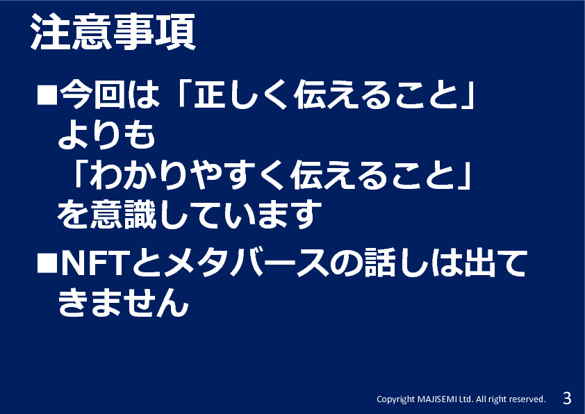 そうすることで、理解が深まりますし、Web3がどこまで普及するのか、どのようなインパクトがあるのかも予想できます。