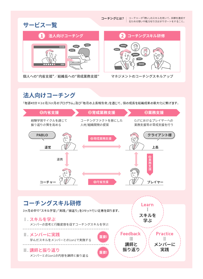 本ウェビナーでは、このような人材育成の課題を解決するための、法⼈向けビジネスコーチングについて解説いたします。