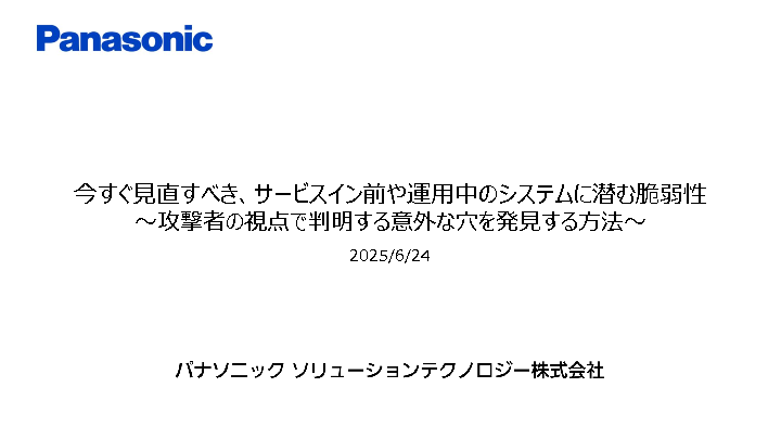 本セミナーでは、サービスイン前と運用中それぞれのフェーズで潜在する脆弱性をいかに発見し、対策すべきかを「攻撃者の視点」に立って解説します。パナソニックの豊富な診断実績と専門知識に基づき、ツールだけでは見抜けない設定ミスや設計上の盲点までを洗い出す実践的なアプローチを紹介します。加えて、Webアプリケーション診断とプラットフォーム診断の違いや選定基準、報告書の活用法、修正確認の重要性など、実際の事例を交え、すぐに活かせる診断・対策のヒントを提供します。