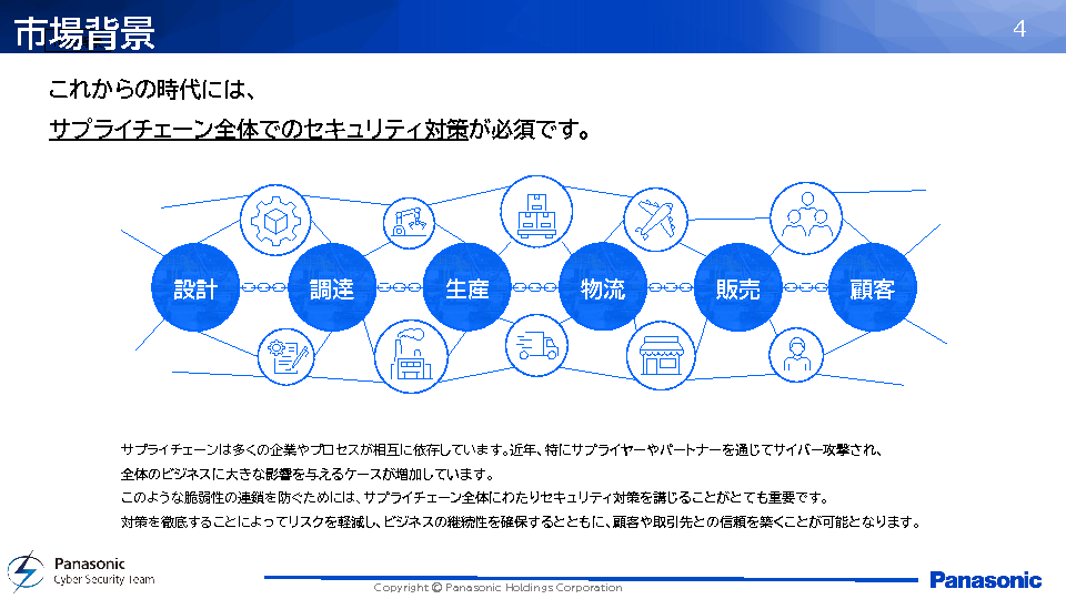 「WisShield(ウィズシールド)」は、パナソニックが自社の製造現場で長年にわたり培ってきたセキュリティ運用の知見を集約したソリューションです。工場特有の制約に対応し、IDS(不正侵入検知システム)による迅速な脅威検知と、ネットワークパケットの収集・影響度分析を通じて、被害の最小化を図ります。さらに、単なる製品提供にとどまらず、パナソニック自身の現場運用で得られたノウハウをお客様に提供することで、実効性の高いセキュリティ体制の構築を支援します。本セミナーではパナソニックのサイバーセキュリティに対する取り組みをご紹介しつつ、その実績から生み出された「WisShield」ソリューションを解説いたします。