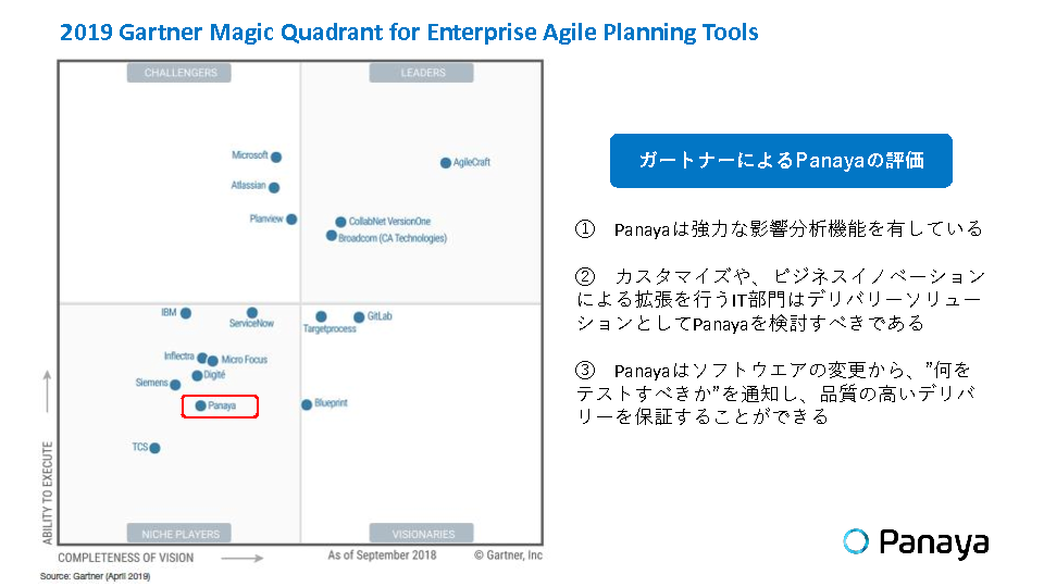 Panaya は2019 Gartner Magic Quadrant for Enterprise Agile Planning Toolsに選出されたSaaSソリューションです。
