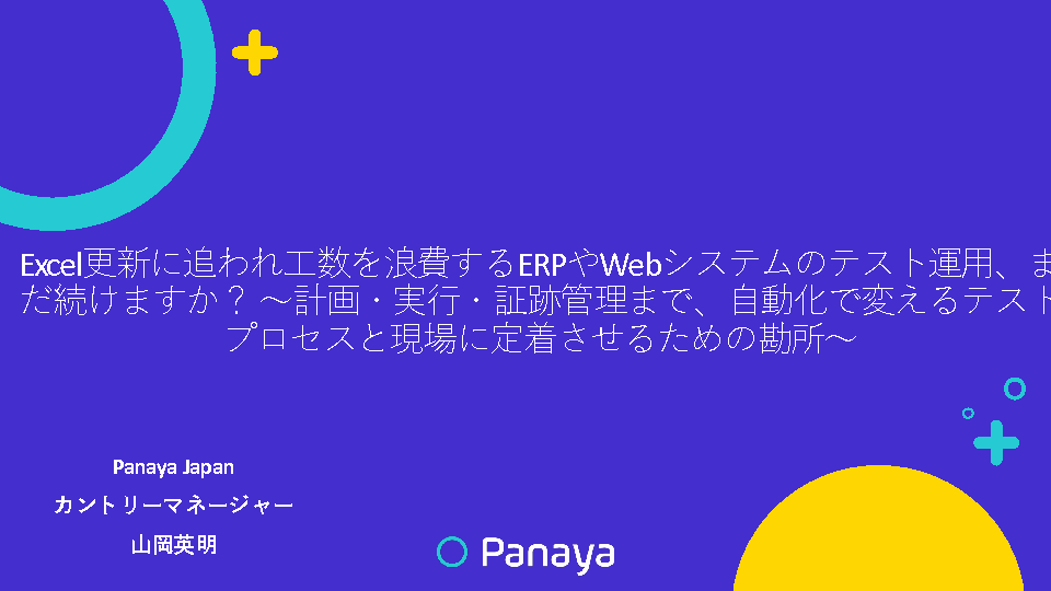 14:05~14:45 Excel更新に追われ工数を浪費するERPやWebシステムのテスト運用、まだ続けますか? 〜計画・実行・証跡管理まで、自動化で変えるテストプロセスと現場に定着させるための勘所〜