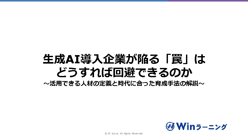 13:05~13:50 生成AI導入企業が陥る「罠」はどうすれば回避できるのか ~活用できる人材の定義と、時代に合った育成手法の解説~