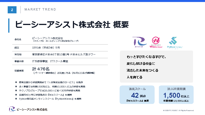 - 全国で受講できる、一定品質の技術研修を検討している方